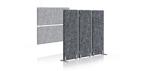 Das VARIO PET PORT Wandsystem bringt mit seiner visuell und haptisch weichen Filzoberfläche eine angenehme Atmosphäre in die Bürowelt. Aufgrund der offenen Struktur der Oberfläche sind die Wandelemente akustisch wirksam und gleichzeitig pinnfähig. Die PET PORT Sichtschutzblenden lassen sich nachträglich an Tischplatten oder auch über Kabelauslassdosen befestigen. Mit den freistehenden PET PORT Stellwänden lassen sich – auch temporär – Zonen, Areale und Wege bilden. Die 40 mm starken PET-Vlies-Wände sind leicht und stabil und erlauben ein einfaches, flexibles Handling. Auch als schallschluckende Wand- oder Hängepaneele sind die PET PORT Elemente einsetzbar.